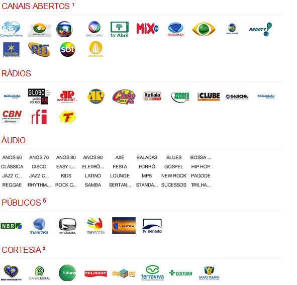 2 Canais cedidos a título de cortesia. Não integram o preço do pacote.