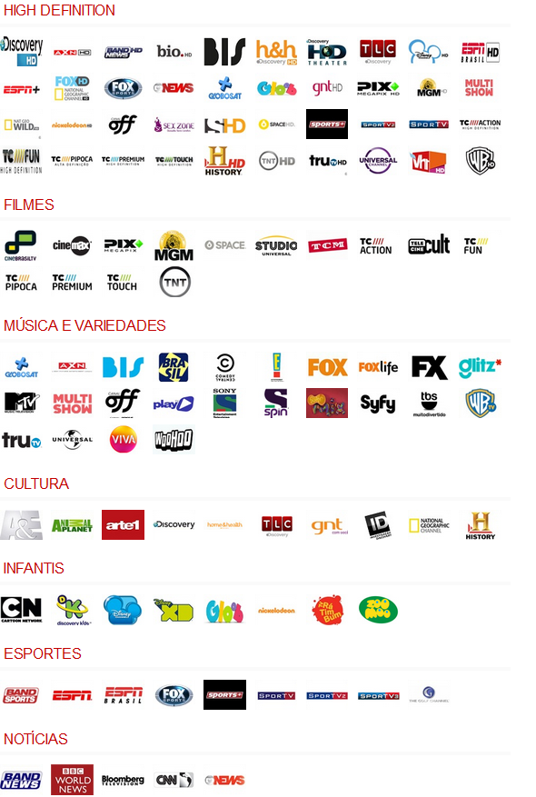 Filmes 24 horas por dia e uma grade com mais de 180 canais, sendo 40 canais em HD para você desfrutar do melhor da TV por assinatura.